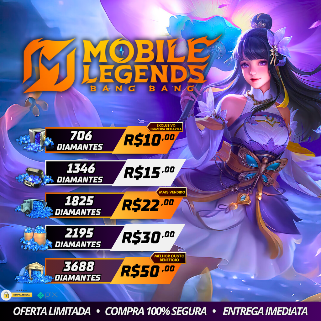 Apenas insira seu ID do jogador, selecione comprar e finalize o pagamento. Seus créditos serão adicionados imediatamente em sua conta Mobile Legends.
